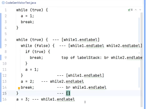 if用一个branch语句测试t~1~的真假,为真就跳到b.true,为假就跳转到b.false